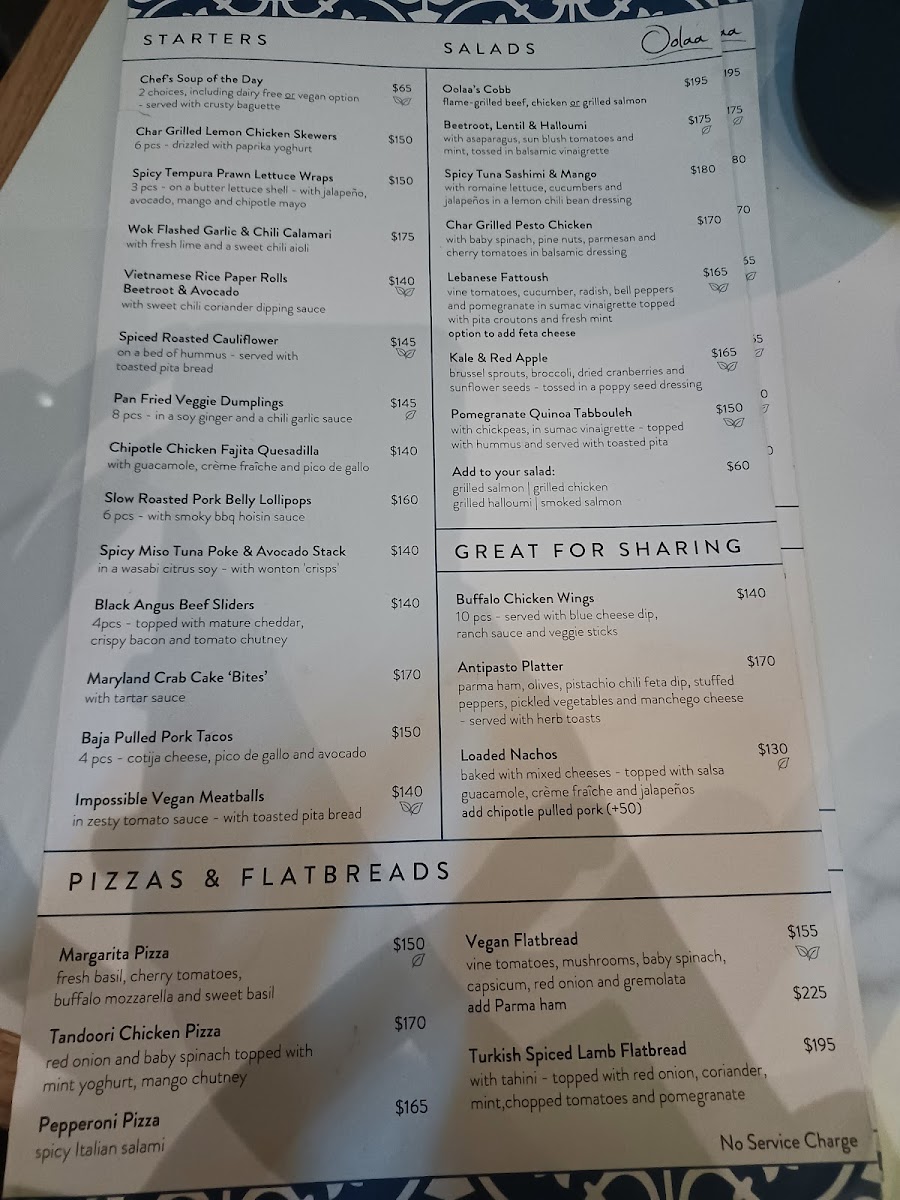 Oolaa Tko also offers a selection of Salads, such as the vibrant Chili Prawn & Mango Salad (香辣大蝦芒果沙律) and the refreshing Lebanese Fattoush Salad (黎巴嫩式蔬菜沙律), which are perfect for those seeking a lighter but satisfying option.